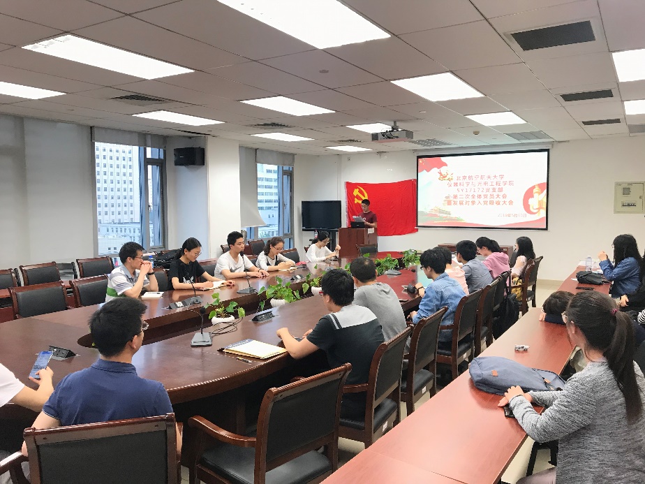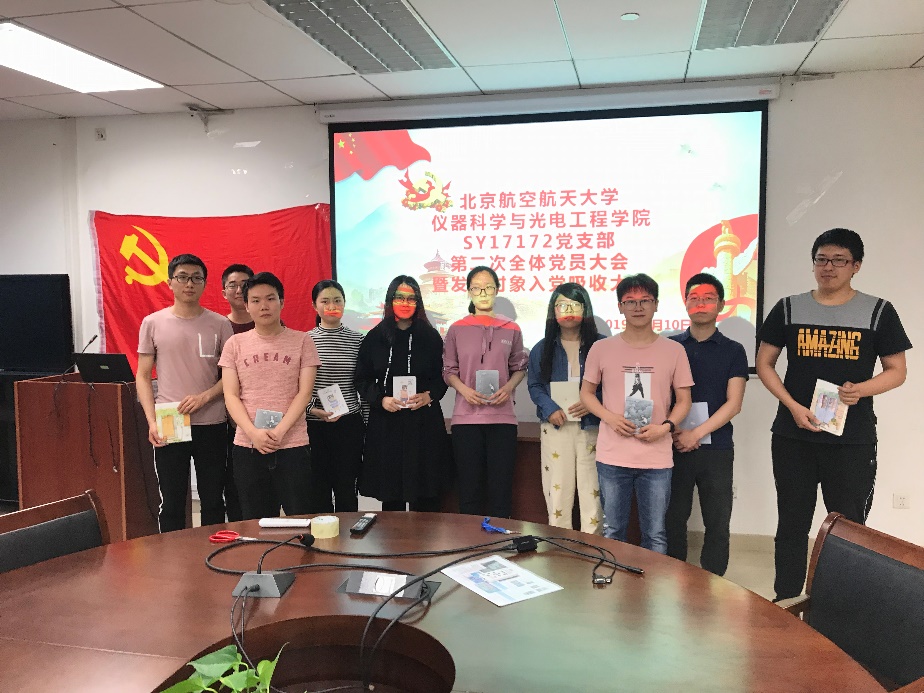 510日周五晚,SY17172党支部在新主楼B707召开了全体党员大会暨预备党员吸收大会,发展陈霁阳同志为预备党员,并吸收加入党支部,为党支部注入新鲜血液,提高党支部的活力。
