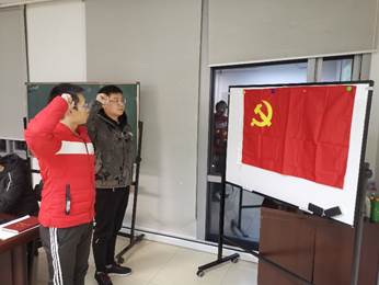最后,由党支部书记黄建斌同志带领新发展的预备党员张飞杨同志面向党旗庄严宣誓!