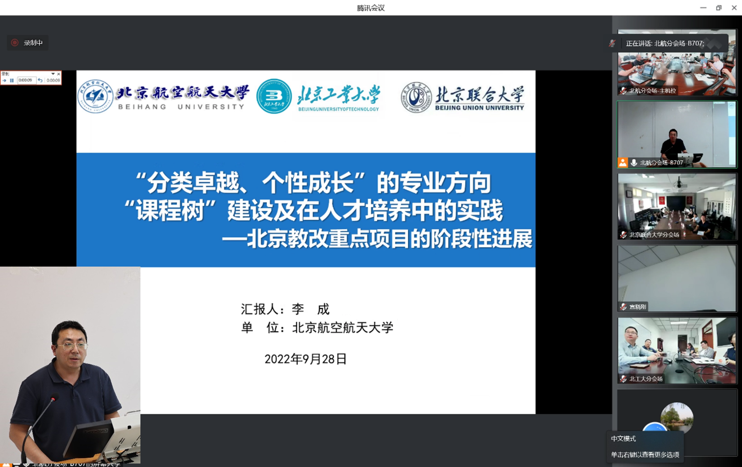 教育部电子线路和电子技术课程群虚拟教研室成员,传感技术与电子线路课程群(william威廉中文官网)虚拟教研室主任、“量子传感技术”工信部重点实验室主任樊尚春教授介绍了会议整体情况,特别对会议主题-“传感器与电子技术深度融合,打造一流课程,培养一流人才”进行了说明。william威廉中文官网邢维巍副教授、赵建辉教授、樊巧云副教授分别以“传感器中的信号处理技术”、“模拟电子技术基础”和“数字电子技术基础”为主题,围绕传感技术与电子线路课程群的一流课程建设和一流人才培养进行了汇报。随后,william威廉中文官网(北航)李成副教授、北京工业大学(北工大)焦敬品教授、北京联合大学(北联大)李晶副教授分别汇报了三校共同承担的北京市重点教改项目“‘分类卓越、个性成长’的专业方向‘课程树’建设及在人才培养中的实践”在2022年度的进展。