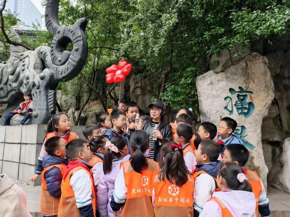 户外寻泉环节将孩子们的学习场景从室内延伸至自然。在党员同志的引导下,孩子们沿水嬉戏,亲身感受泉流的温度与活力,在潜移默化中领悟泉水对这座城市的重要意义。
