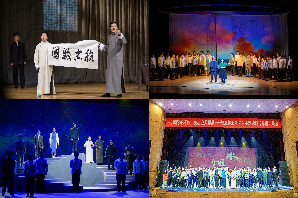 “从少年初成到青年豪情,从学成归国到壮志难酬,从鞠躬尽瘁到百折不挠,林士谔先生饱经沧桑而热烈之至,将少时的志向培育成参天大树,为一代代北航人树立了标杆。”参演《永恒》话剧的学院本科生孟泓贝同学有感而发。学院以“中国航空自动控制学和陀螺惯导学科的奠基人”、“北航建校元老之一”的林士谔先生为原型,创演北航首部校园大师剧《永恒》,话剧由员工自主创作编排于2015年首演,至2025年,共面向全校师生公演9次,引领师生在沉浸式体验中感悟航空报国情怀。