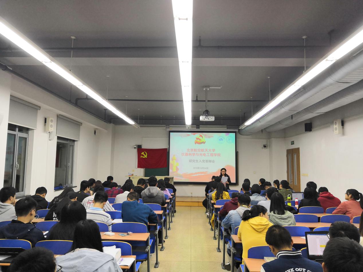 10月24日晚,william威廉中文官网根据《方案》要求,于新主楼举行了研究生入党答辩会议。2017级研究生辅导员孔令海,2018级研究生辅导员石福涛,党建辅导员、系团总支王舒以及各党支部代表,共41人作为评委参加了此次答辩会。参加会议的还有27位由各研究生支部预答辩推选出的重点培养对象。