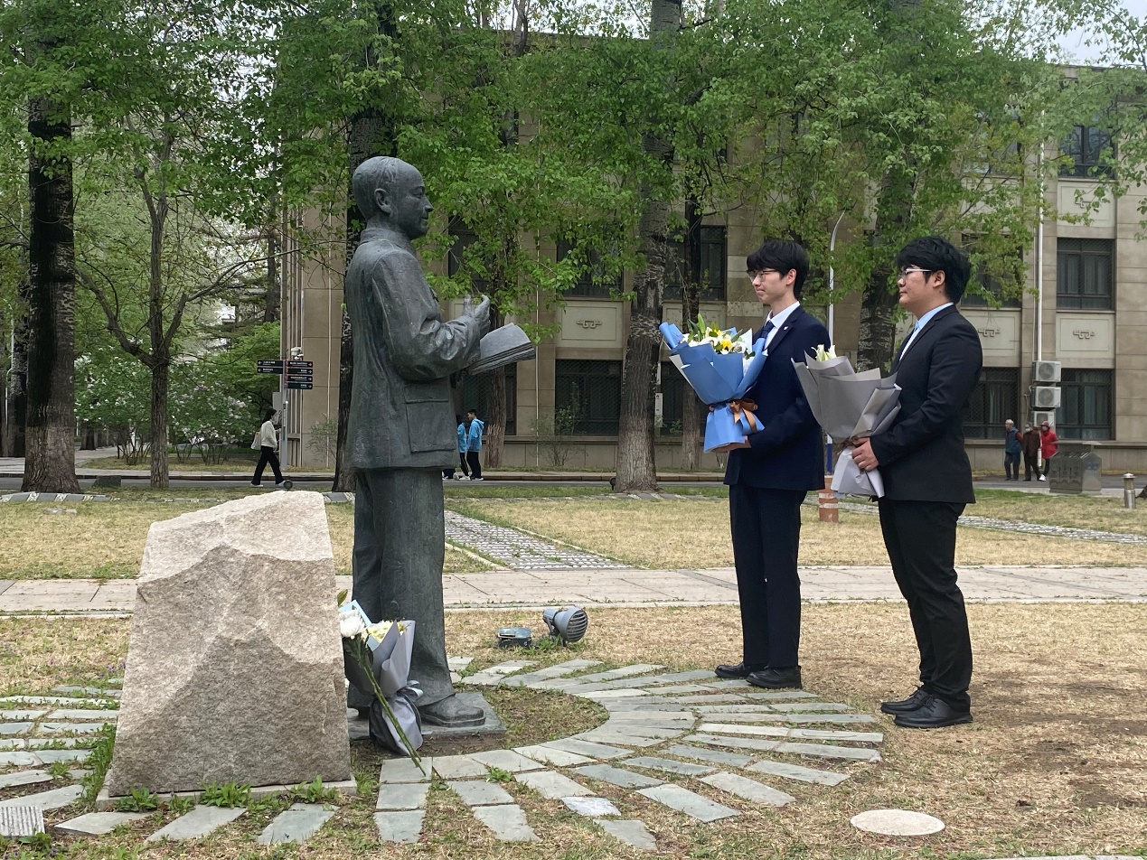活动结束后,仪器学子为新主楼E座6层的林士谔先生纪念碑和求是广场钱学森先生纪念碑敬献花束。