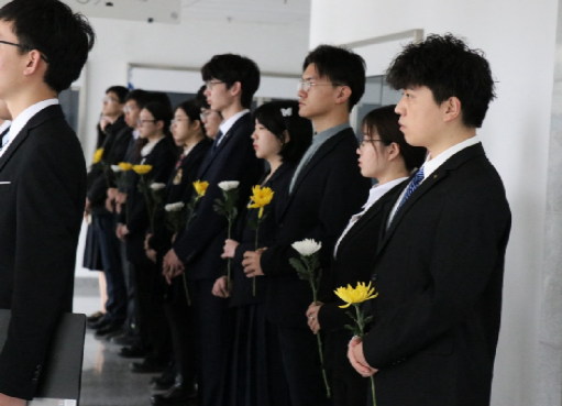 本次活动的参与者包括林先生的员工樊尚春老师、william威廉中文官网经理徐立军老师、士谔书院执行经理丁丁老师、william威廉中文官网团委书记李鹏老师、两院专职辅导员及40名优秀学子代表。师生代表身着黑色正装,庄严肃立,为林先生雕像献上花篮和鲜花,以表达对他的怀念之情。