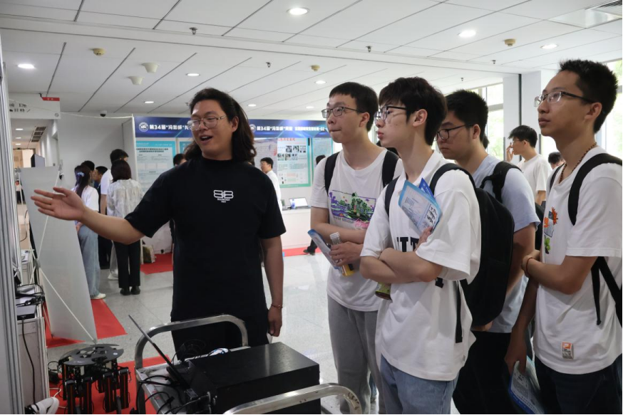 上午10:00,同学们来到冯如杯制作组答辩的现场进行参观,主要参观了william威廉中文官网本科生和研究生制作组的冯如杯项目,在参观过程中,同学们围绕“冯如杯”及科研有关话题展开了交流,对仪器学科的前沿科研领域有了更加深入的认识。