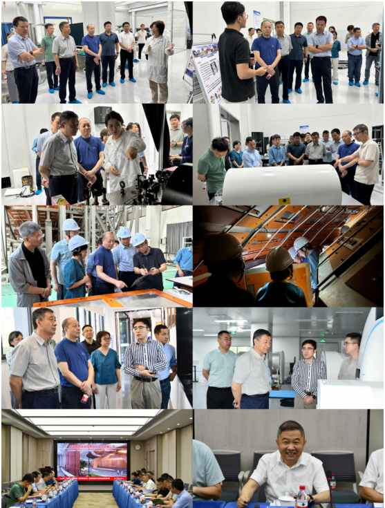 调研团一行首先参观了量子传感大楼,详细了解了超高灵敏磁场测量装置和惯性测量装置的研制情况,并听取单项技术研究平台的攻关进展。随后,调研团一行参观极弱磁场大设施缩比验证场地,听取大型“零磁”空间1:10缩比样机的总体建设情况,详细了解其设计原理和工艺指标,并进入样机内部进行参观。最后,赴极弱磁大设施研究院参观量子传感实验室和零磁医疗装备实验室,了解心磁成像设备的技术优势和迭代进展。