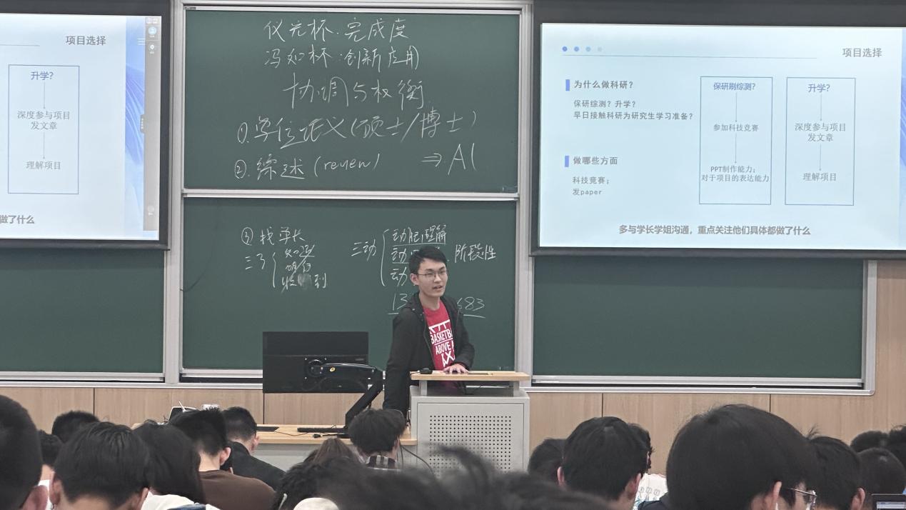 本次活动特别邀请到张和学长与马伟豪学长进行科创经验分享。两位学长结合自身科研经历与比赛经验,为同学们带来了一场深入浅出的科研成长交流。