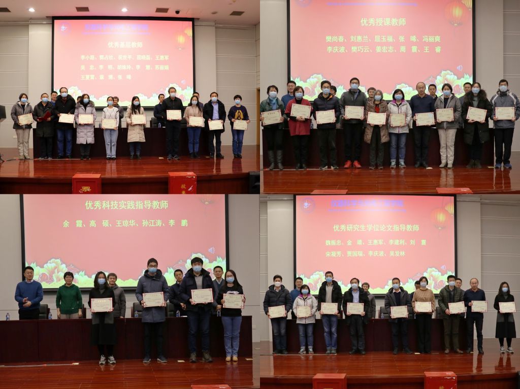 大会最后进行了2021年教师节表彰证书颁发仪式。学院领导班子为2021年学院优秀基层教师、优秀授课教师、优秀科技实践指导教师等对李小路、樊尚春、余霞、王琼华、魏振忠等人进行了表彰。