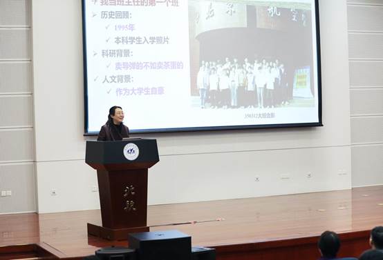 报告中,赵慧洁强调北航具有教学科研紧密结合的优秀传统,她介绍了教学名师张国华教授在模拟电路基础课程上的风采及对她的深刻影响,同时讲述了张惟叙老师51岁开始光纤陀螺研究的创新故事。“老师的鼓励使我内心充满了温暖和力量”,赵慧洁真切说道。