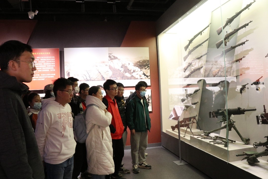参观结束后,师生相聚在展览馆前,一同分享今天学习实践的心得体会,共话对中华民族近现代从战火纷飞到今天繁荣昌盛这一路艰辛历程的深刻感悟。黄欣鹏同志被英雄母亲邓玉芬的事迹触动,表示“在抗战精神的洗礼下,我热血沸腾,立志投身国防,继承革命传统,坚定理想信念,请党放心,强国有我”。杨嘉源同志被革命先烈为了争取民族解放,不惧牺牲,甘愿抛头颅洒热血的精神深深震撼,并借用习近平总书记的话“历史只会眷顾搏击者,奋进者,坚定者”表示要为实现中华民族的伟大复兴而不断奋斗。最后,全体党员同志重温了入党誓词,回忆往昔峥嵘岁月,坚定红色理想信念。
