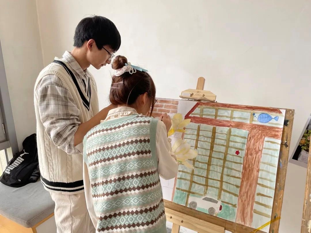 活动正值考研复试期间,在休息大厅等待面试的学弟学妹也参与了进来。相信这五彩缤纷的颜色画出的,也是他们印象深刻的重要的一个春天。