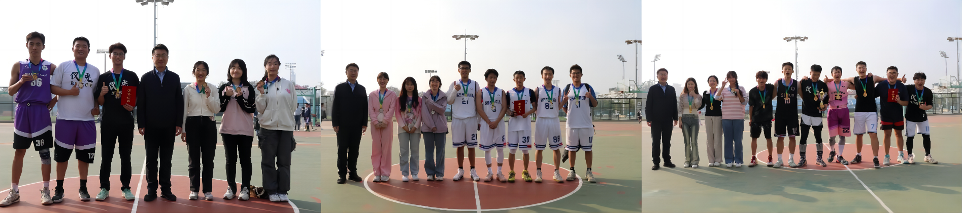本届篮球赛冠军赛由启航队对阵快乐养生篮球队,季军赛由AIDLab队对阵eng组队。中午12:30分许,比赛正式开始。对阵双方势均力敌,快节奏的运球、传球、投篮、得分使比赛气氛逐渐热烈,数个三分投球将比赛推向高潮,每位队员都拼尽全力、奋力一搏,争夺最后的胜利者。中场投篮环节,各队女生屏气凝神,数次投中,为本队贡献力量。最终,启航队力克对手,以54:40的比分加冕冠军,快乐养生篮球队获得亚军;eng组队以95:86的比分获得季军,AIDLab队获得殿军。