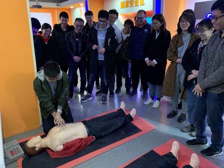 在一些环节中,志愿者讲解并亲自示范相关安全技能,支部党员踊跃尝试,气氛活跃,大家身在其中、学在其中。
