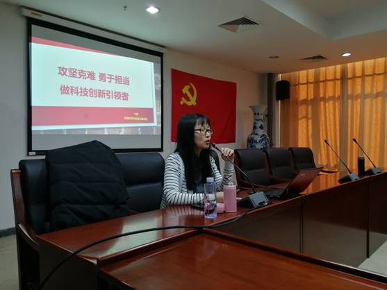 丁铭老师从十九大报告出发,立足于自己的科研生涯,生动阐释了她对科技创新和如何去做一个科技创新引领者的所思所想。报告回顾了新时期国家建设的重大科技成果,“天宫”问天、“蛟龙”下海、“天眼”现世……方方面面取得的惊人突破,总结起来,就是我们代代相传的创新精神。丁铭老师列举创新在衣食住行等方方面面的作用,回顾砥砺奋进的五年,是科技腾飞的五年,但是在细节技术与核心技术上我国的科研创新较世界顶尖水平还存在着一定的差距。丁老师的分析指出,只有掌握自己的核心科技,才能让“中国制造”逐步转变为“中国创造”。丁铭老师从专利问题、环境问题面临的严峻现状分析、总结得出,在新形势下,走科技创新之路,成为创新型国家是中国的唯一选择。十九大报告强调,创新是引领发展的第一动力,是建设现代化经济体系的战略支撑。发展科技创新,不仅能提高民生水平,还能提高我国的国防硬实力,以支撑我国的大国崛起与大国担当。报告在丁铭老师对大家的寄语中结束,她勉励同学们要瞄准国家创新需要,敢啃硬骨头,肯向学习、肯吃苦,坚持不懈、勇于担当,树立榜样,从跟跑到并跑到领跑不断超越,成长为具有国际视野的高科技领军人才,只有这样才能实现个人梦想,实现伟大的中国梦。随后,大家针对报告中的观点与丁铭老师进行了充分交流,包括思想素养对科研行动的激励性,老员工的创新活动规划等等。