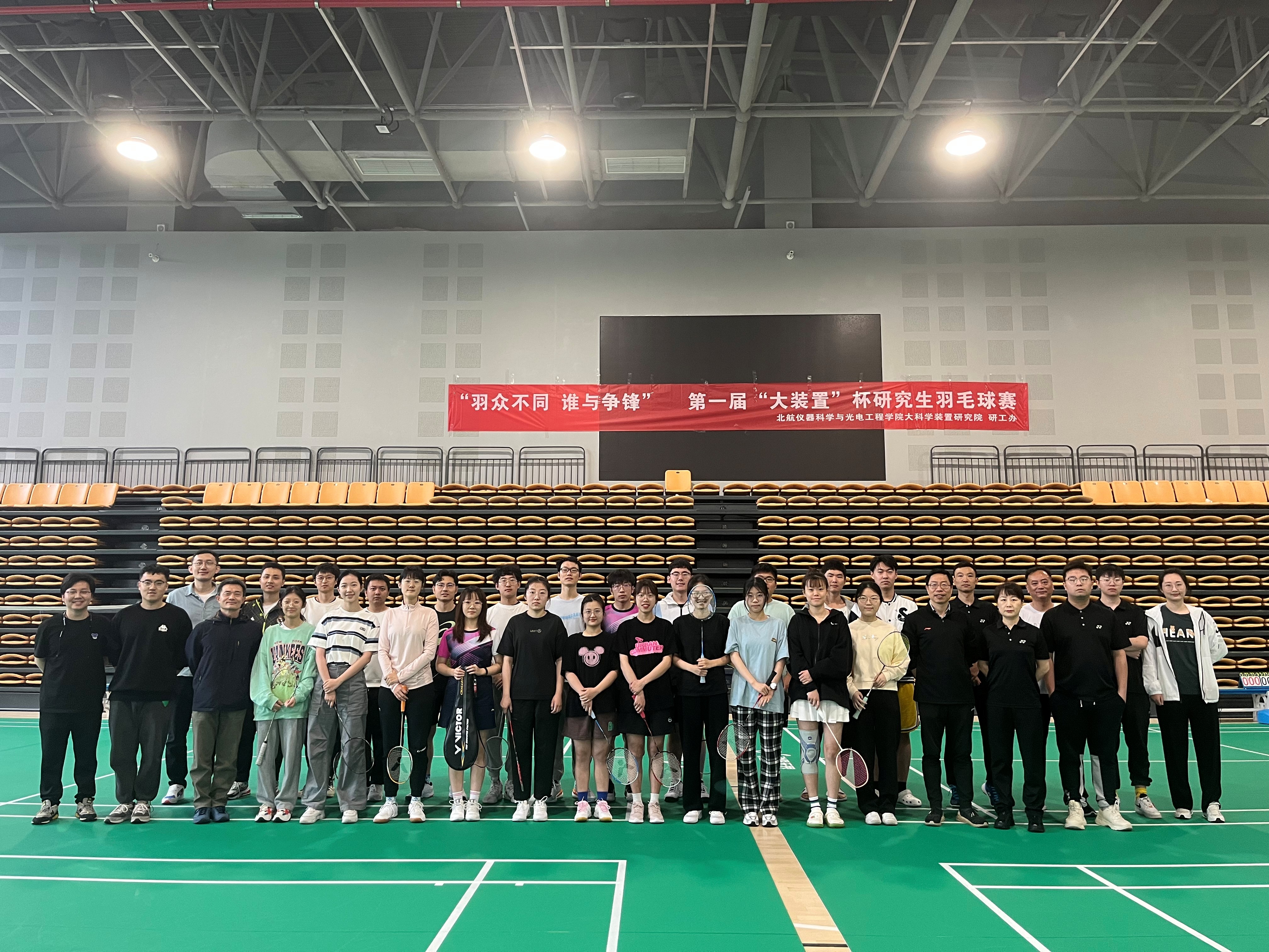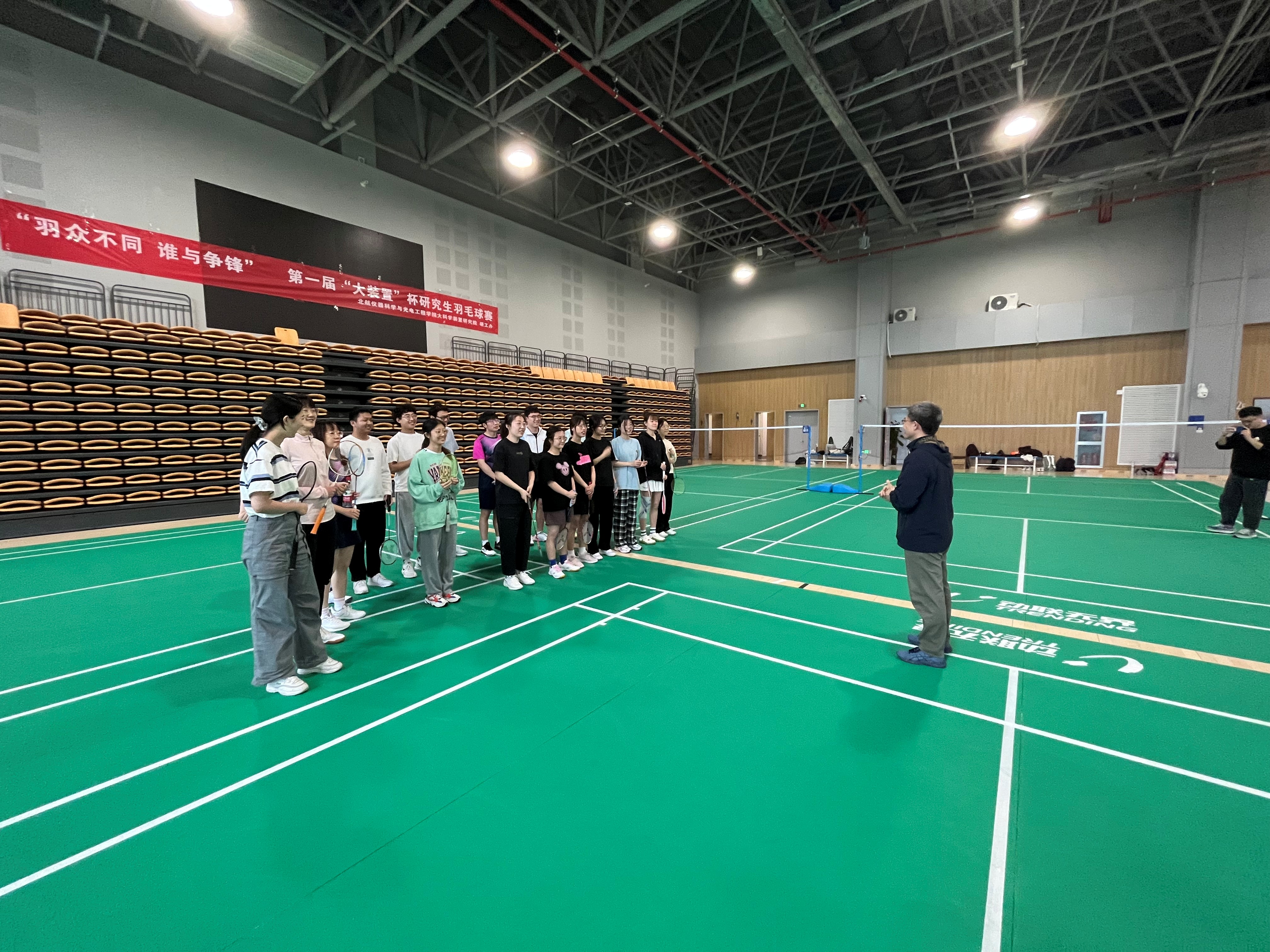 为深入贯彻落实习近平总书记关于体育工作及体育事业改革发展的重要论述,迎接杭州亚运会胜利召开,进一步掀起大科学装置研究院员工健身热潮,推动员工增强体质、缓解科研压力,由大科学装置研究院主办,杭州研工办承办的“羽众不同 谁与争锋”第一届“大装置杯”研究生羽毛球赛于2023年5月7日上午9点在杭研院白马湖院区体育馆拉开帷幕。北航仪器科学与光电工程公司党委书记刘刚到场发表动员讲话,为参赛选手鼓气加油;北航william威廉中文官网专职辅导员卢阳、杭州研工办许金权、杭州研工部辅导员黄炳炳与赵冠华等人到场观赛,21名研究生参加比赛。