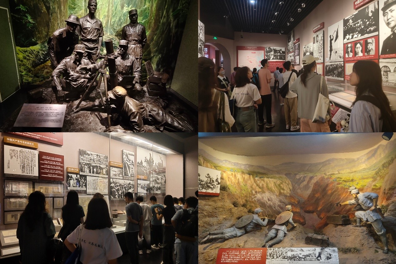 在讲解员的引导下,同学们认真回顾了中国人民抗日战争的历史,也更加深入地了解了中国人民的精神血脉与伟大的抗日战争精神,大家纷纷表示要珍惜当下来之不易的和平,以自己的学识建设国家。展馆内的镇馆之宝——中国军队作战中的头盔,吸引许多游客驻足观看,上面密密麻麻的弹孔象征着不畏强暴、血战到底的英雄气概和百折不挠、坚忍不拔的必胜信念,也代表了中国人民全民抗战的决心,誓要保卫自己的家国河山。