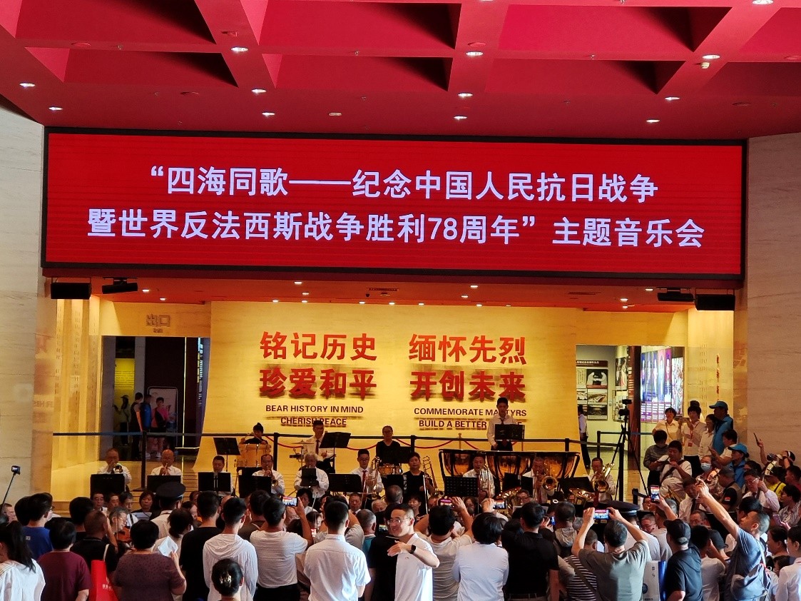参观当日,正逢“四海同歌——中国人民抗日战争暨世界反法西斯战争胜利78周年”主题音乐会,在慷慨激昂、动人心弦的乐曲中,在场群众伴着交响乐一起歌唱,爱国之情油然而生。