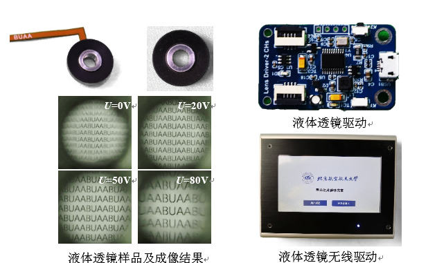研制了多种结构的电润湿液体透镜,兼具160V耐高压和12V低压驱动特性,并开发了配套驱动软硬件。