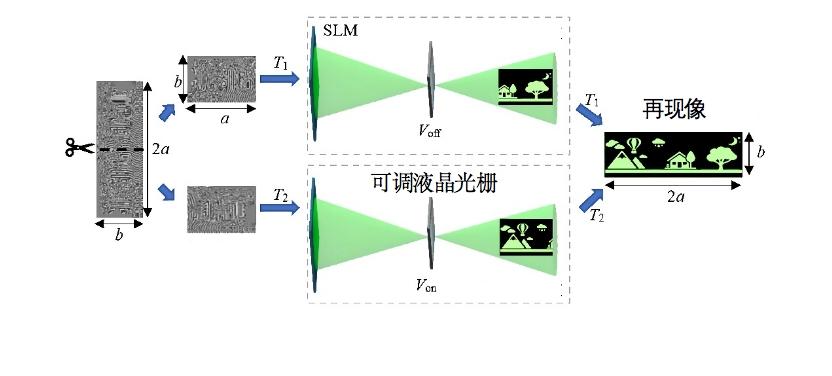 提出了基于可调液晶光栅的宽视角大尺寸全息3D显示系统。该系统利用可调液晶光栅对全息再现像进行二次衍射,并利用提出的两种全息图生成方法对应实现了宽视角和大尺寸全息3D显示。该系统的视角达57.4°,重建图像的尺寸扩大了约4.2倍。
